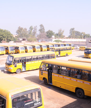 The school has a fleet of 72 buses to provide transportation of up to 50 km from Budhlada at very nominal rates.
